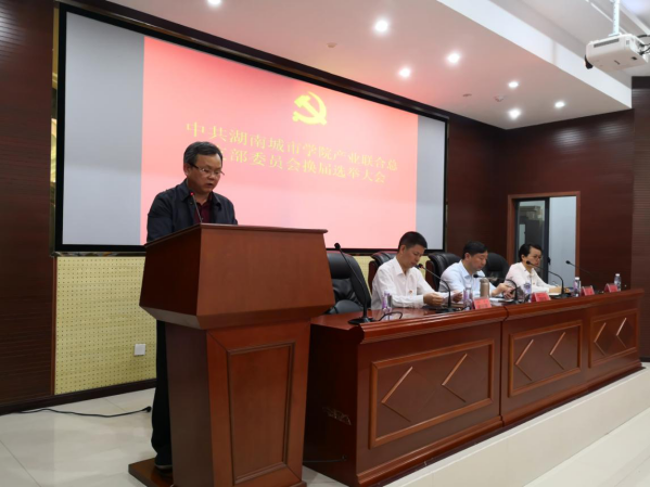 根据《中国共产党章程》和学校党委《关于学校基层组织换届指导意见》(湘城院[2019]12号)等文件精神和相关要求,2019年5月10日下午,中共JN江南·(中国)体育官方网站产业联合总支部委员会在建规楼报告厅召开党员大会,进行支部换届选举工作。学校党委委员、副校长谭献良同志出席并讲话,本次会议由产业处处长熊创贤同志主持。