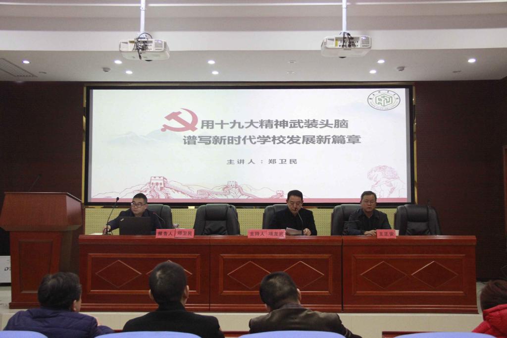 2017年12月12日下午,学校党委委员、副校长郑卫民教授在建规楼学术报告厅作学习党的十九大精神专题辅导报告。资产经营有限公司及下属各企业全体党员、建规院全体教职工、学生党员参加会议。