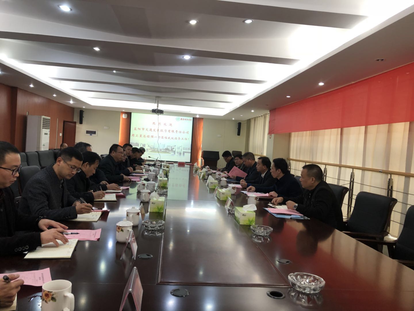 12月5日上午10:30,我校与益阳市交通发展投资有限责任公司(交发投)产学研战略合作协议签订仪式在一办公楼一会议室举行,交发投总经理周卫星、副总经理徐炳炎、王琨以及相关部门负责人,校长李建奇、副校长郑卫民、产业处总支书记王正安、产业处处长熊创贤以及各下属企业负责人出席签约仪式。