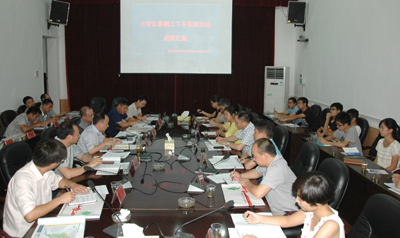 (本网讯) 8月28日下午,我校大学生服务团赴郴州“三下乡”活动成果汇报会在安仁县政府会议室举行。校党委书记赵运林以及团委、建筑与城市规划学院相关负责人,带队老师和服务团全体学生参加了汇报会,安仁县县委副书记、县长李小军等领导出席了汇报会。