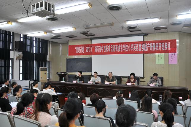 ,“国培计划”湖南省中西部项目JN江南·(中国)体育官方网站小学英语置换脱产研修班开班典礼在我校朝阳校区图书馆报告厅举行,继续教育学院、外国语学院相关负责人和研修班50名学员参加了仪式。
