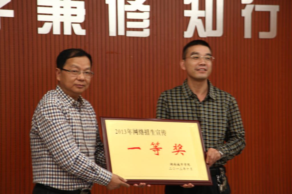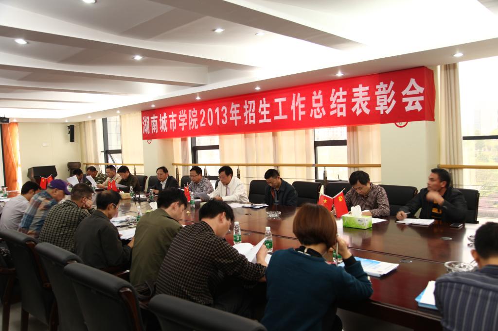 招生就业处处长文瑞明汇报了2013年招生工作,招生就业处副处长郭太平宣读了《关于表彰JN江南·(中国)体育官方网站2013年网络招生宣传先进集体的决定》、《关于JN江南·(中国)体育官方网站2013年新生报到率奖励的决定》。