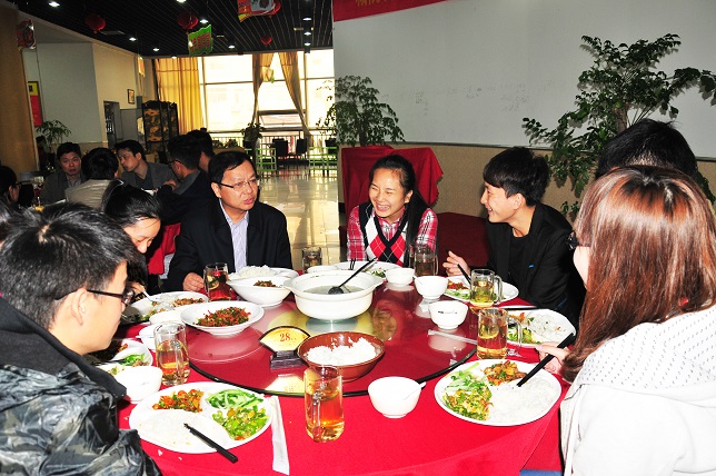 (本网讯)1121日中午,我校第一期“校长午餐会”在兴城餐厅举行。校长李建华与随机邀请的10位学生代表共进午餐,交流大学生活中的乐趣与疑惑,讨论近期学校热点问题。学生处、团委相关负责人一同参加了午餐会。