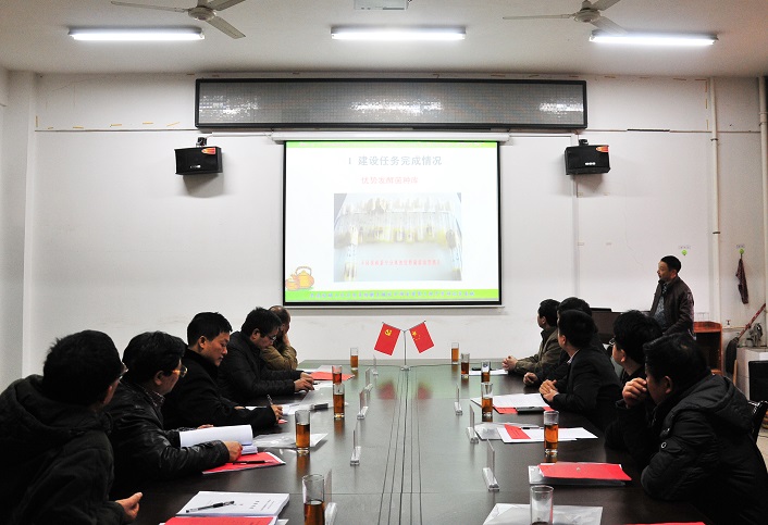 化学与环境工程学院副院长刘石泉从基地建设任务完成情况、技术创新与产学研合作情况、产业化培育项目完成情况、团队建设与人才培养情况、经济社会效益与产业化贡献、管理运行机制、困难和下一步发展思路等7个方面作了汇报。益阳茶厂副总经理刘迪军从公司简介、合作历史、合作内容、合作效益等4方面作了汇报。
