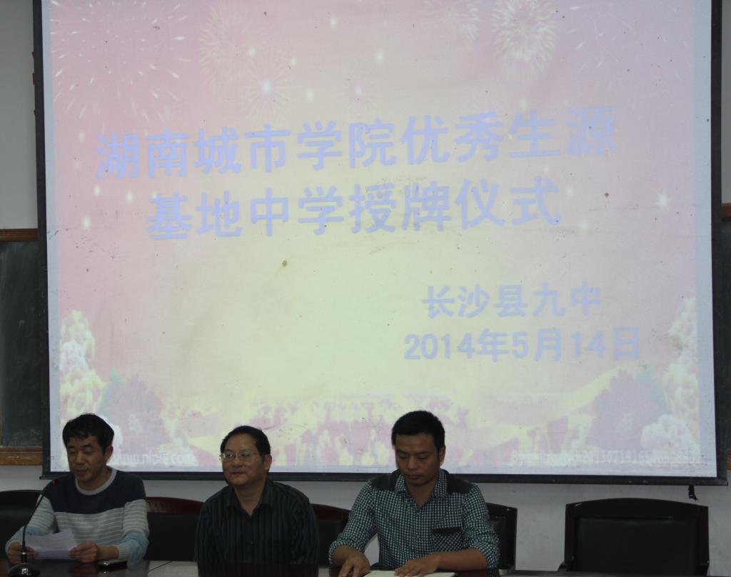 (本网讯)为进一步巩固和加强优秀生源基地建设,加强我校与县级以上重点中学的联系与合作,吸引更多优秀生源,5月15日上午,我校正校级督导范志超以及招生就业处相关负责人一行5人赴长沙县第一中学、第九中学签署了《JN江南·(中国)体育官方网站优秀生源基地协议书》,并向优秀生源基地负责人授牌。
