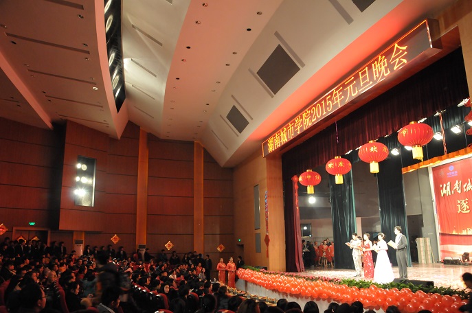 (本网讯) 12月   30晚,以“逐梦青春 ‘羊’帆起航”为主题的我校2015年元旦晚会在音乐厅隆重举行。在家的校领导与500余名师生欢聚一堂,载歌载舞,共同谱写新年华章。