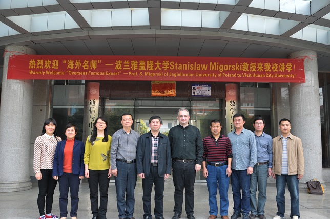 数学与计算科学学院院长肖翠娥主持项目启动仪式。国际交流处处长周桂平宣读了湖南省教育厅《关于下达2014-2015学年度湖南省“海外名师”项目计划及经费的通知》(湘教通〔2014309号)。项目负责人李云翔博士介绍了“海外名师”Stanislaw Migorski教授的基本情况。