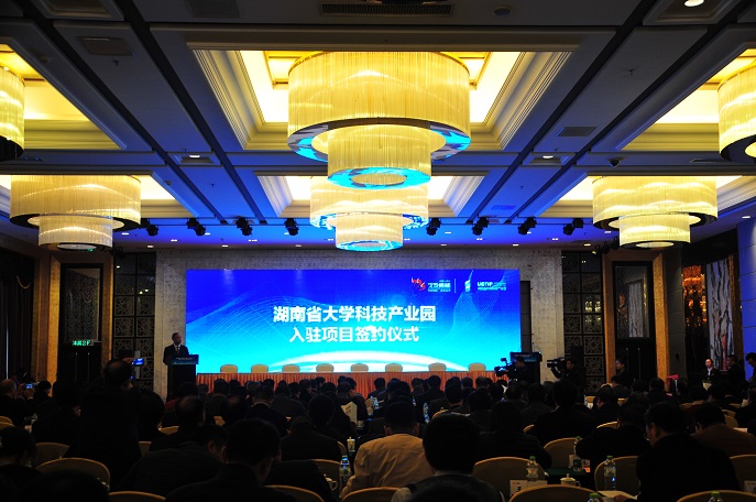 会议现场,我校以及湖南中大新能源工业技术研究院、湖南华越锂能科技实业有限公司、武汉科技大学战略合作等8个项目与湖南省大学科技产业园正式签约。