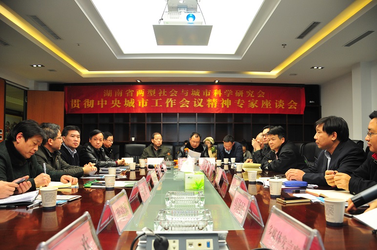 (本网讯)为配合湖南省城市工作会议的召开,受省住房和城乡建设厅委托, 1 22 下午,湖南省两型社会与城市科学研究会在我校规划建筑设计研究院长沙总部举行了“贯彻落实中央城市工作会议精神专家座谈会”。