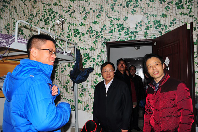 李建华一行先后走访了学生公寓、学生食堂、教室、现代教育技术中心和装修中的学生活动中心,对校园环境和后勤服务运行保障进行了重点检查。