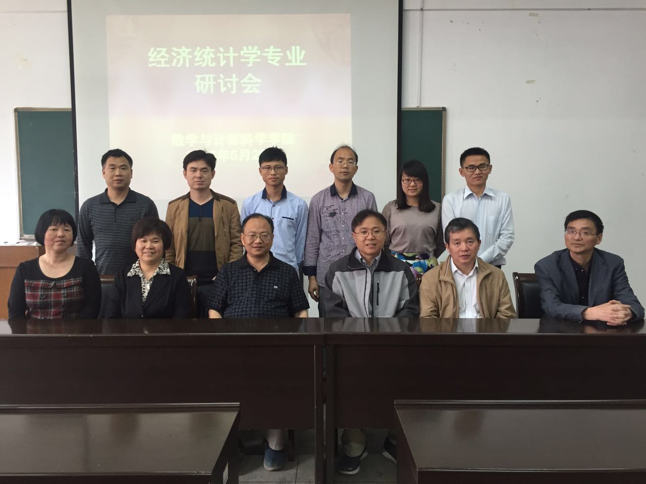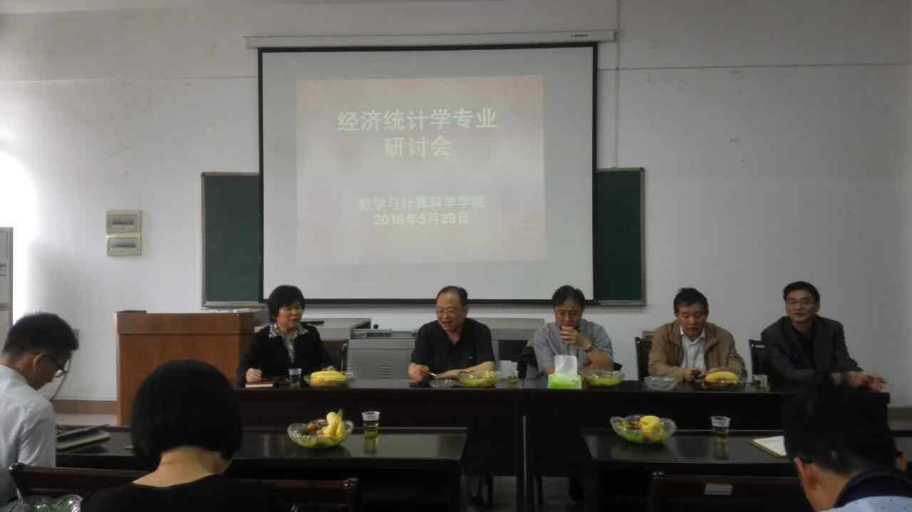 (本网讯)2016年5月29日上午,中国科学院数学与系统科学院副院长巩馥洲研究员,加拿大康科迪亚大学周晓文教授,长沙理工大学数学学院院长、博士生导师李应求教授应邀来校,在电信楼数学与计算科学学院会议室就经济统计学专业的建设分别作了指导。数学与计算科学学院领导班子,统计系全体教师和全院博士参加了报告会。