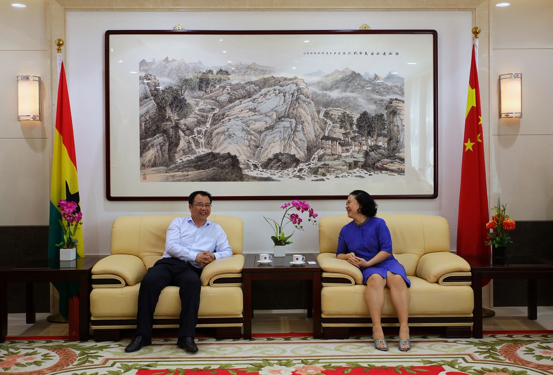 (本网讯)加纳当地时间6月4日下午,校长李建奇一行7人抵达加纳首都阿克拉,拜访了中国驻加纳大使馆大使孙保红。