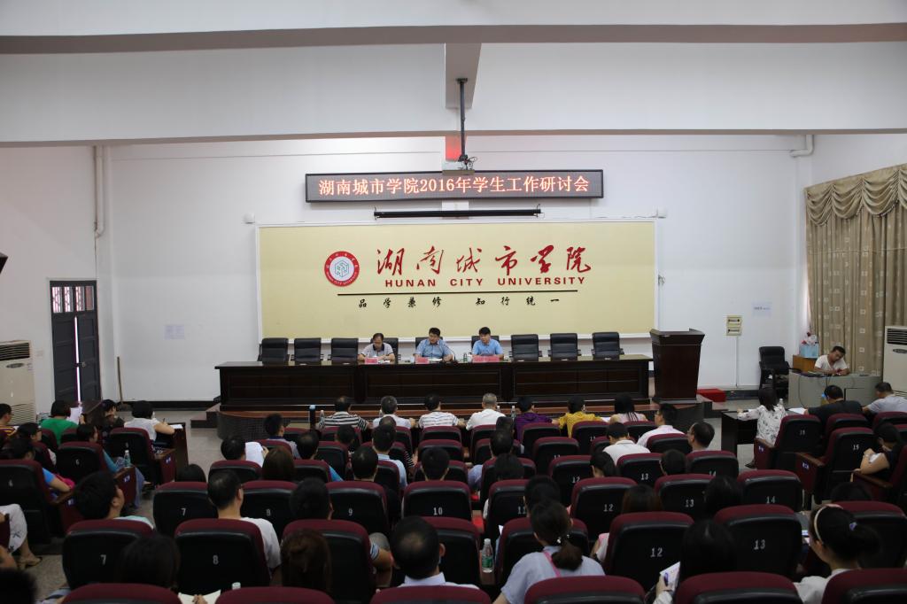 (本网讯)8月29日,学校2016年学生工作研讨会在电信楼视频会议室召开。党委书记罗成翼、党委副书记汤放华、副校长何振出席会议,学生工作处、团委、招生就业处全体工作人员,各二级学院党总支副书记、全体辅导员以及组织部、宣传部相关人员参加了会议。会议由汤放华主持。