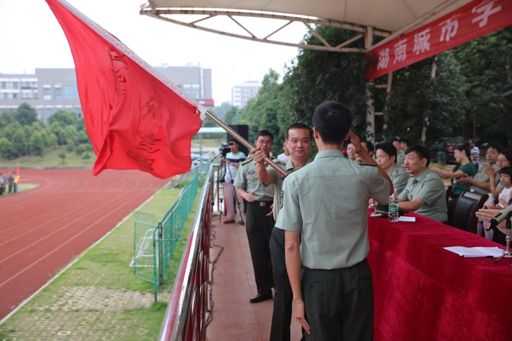 最后,雷存喜代表学校向军训团授旗。