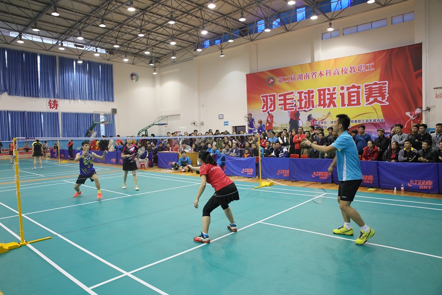 湖南省本科高校教职工羽毛球联谊赛是由湖南省本科院校教职工羽毛球协会主办,旨在为全省本科高校广大羽毛球爱好者搭建一个切磋技艺、提升水平、增进友谊的良好平台,进一步推动全民健身运动在高校的开展。(周敏)