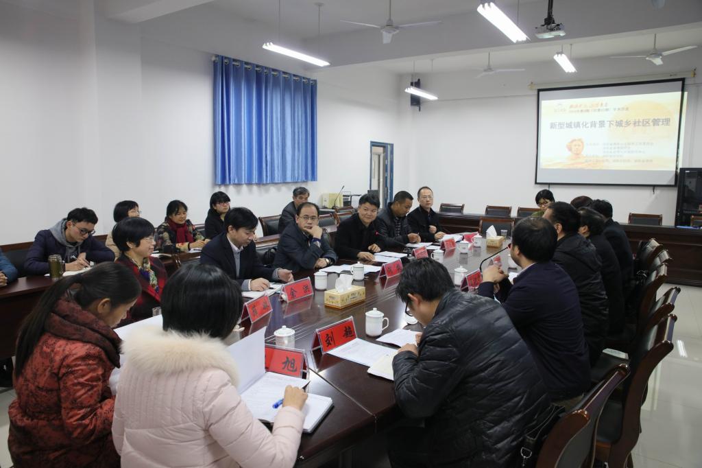 (本网讯)11月29日下午,“湘江时论”2016年第三十三期学术沙龙“新型城镇化背景下的城乡社区管理”在我校城市管理学院会议室举行。湖南省社科联党组成员、副厅级纪检员戴树源,湘潭大学公共管理学院院长盛明科、益阳市城管执法局局长郭腊云、湖南师大公共管理学院肖光荣教授,我校党委副书记汤放华,副校长刘辉煌、何振,城市管理学院院长莫连光、党总支书记余洪、副院长汤勇以及来自湖南省社科联、湖南红网、湘潭大学、湖南社会科学报和我校的专家学者参加了研讨会。会议由湖南省情与对策研究中心主任吴纪宁研究员主持。