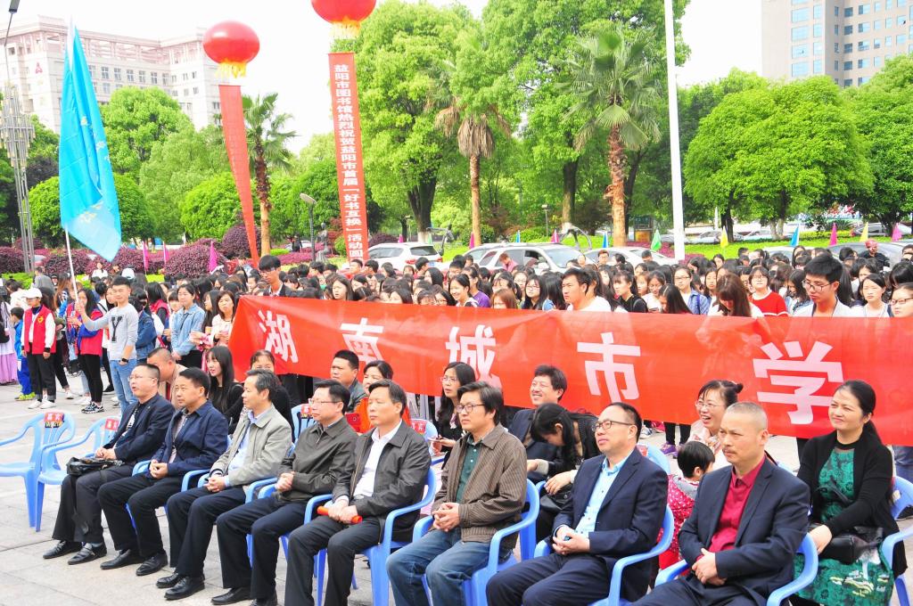 随着我校学生的诗朗诵《雨巷》,启动仪式慢慢拉开帷幕。一则《道德经》,一片国学海,我校人文学院学生着汉服、行汉礼的经典诵读引人入胜。随即,市图书馆馆长袁宁波宣读了“书香益阳·润泽心灵——好书互换”阅读共享倡议书,胡光华发表了“文化强市”推广全民阅读的讲话,我校人文学院学生钟贝纯作为市民代表发言,胡立安宣布全市阅读推广活动启动仪式正式开始。随后,来自各高校的学生文艺表演为市民带来了活力四射的青春气息,使活动现场气氛热闹非凡。
