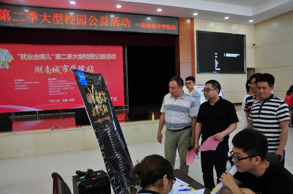 本次活动由湖南省人力资源和社会保障厅、湖南省教育厅、共青团湖南省委主办,JN江南·(中国)体育官方网站及湖南省人力资源服务中心、湖南省大中专学校学生信息咨询与就业指导中心、共青团湖南省委员会学校部、湖南人才市场有限公司和益阳市人社局、教育局、团委联合承办,湖南人才网,人才就业社保信息报社协办。40家用人单位齐聚我校,为我校2017届毕业生提供就业岗位400余个。学校党委行政高度重视此次活动,副校长郑卫民来到活动现场,看望了招聘单位人员和应聘学生,并耐心地与多家用人单位沟通,了解相关情况。
