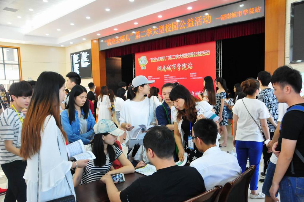 (本网讯)5月16日下午,湖南省“就业去哪儿”第二季大型校园公益活动在我校第二办公楼学生活动中心隆重举行。副校长郑卫民、招生就业处全体工作人员以及各二级学院师生几百人参加了此次活动。