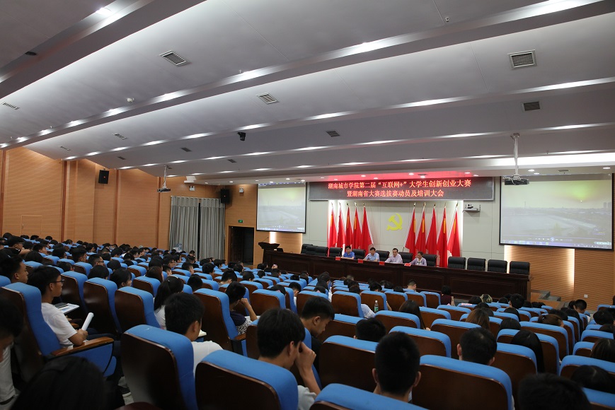 (本网讯)6月6日,学校在图书馆报告厅召开了JN江南·(中国)体育官方网站第二届“互联网+”大学生创新创业大赛暨湖南省大赛选拔赛动员及培训大会。副校长雷存喜、谭献良,教务处相关负责人、创新创业导师、团委、学生处、招生就业处、应用与创新创业学院负责人、二级学院负责学科竞赛副院长、负责学生工作副书记、各班班长、学习委员参加了会议。