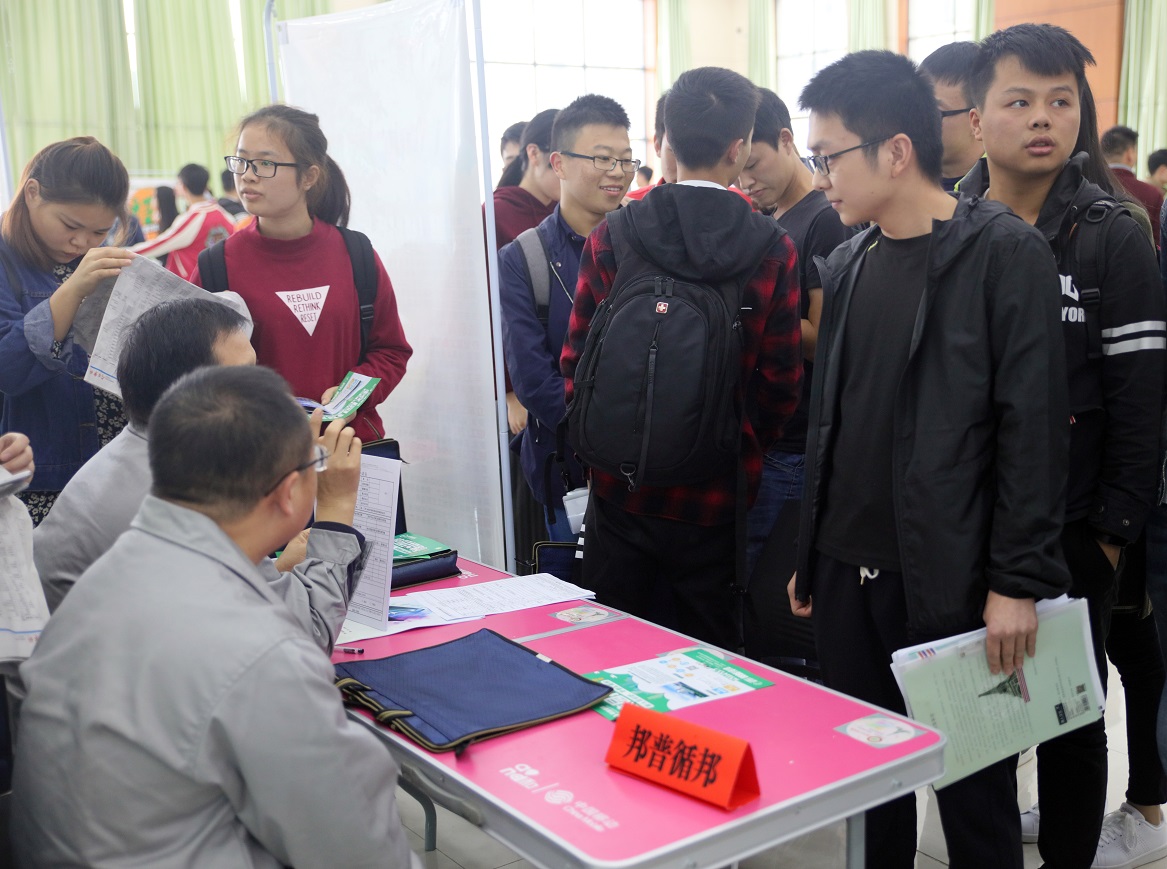 (本网讯)10月23日,“相约宁乡”工业企业专才招聘会暨长沙人才新政进校园活动JN江南·(中国)体育官方网站专场宣讲会在学校学生活动中心举行。副校长郑卫民,宁乡市委组织部、人力资源和社会保障局相关负责人,招生就业处相关负责人以及近500名毕业生参加了宣讲会及现场招聘。