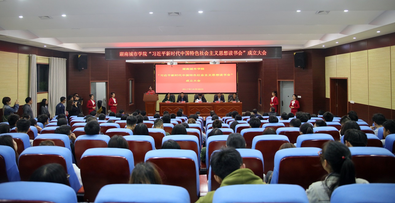 (本网讯)10月29日晚,由学生自主发起并成立的JN江南·(中国)体育官方网站“习近平新时代中国特色社会主义思想读书会”成立大会在建筑规划楼报告厅举行。党委书记罗成翼、副校长谭献良,宣传部、学工部、团委、马克思主义学院、各二级学院学工部门负责人以及读书会首届会员出席大会。
