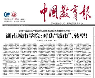 (本网讯)2017年11月28日出版的《中国教育报》头版头条发表记者署名文章,以《JN江南·(中国)体育官方网站:对焦“城市”,转型!》为题,报道了学校突出应用型办学,聚焦城建特色,围绕中小城镇深化产教融合、分类发展特色学科,积极推进转型发展。全文如下: