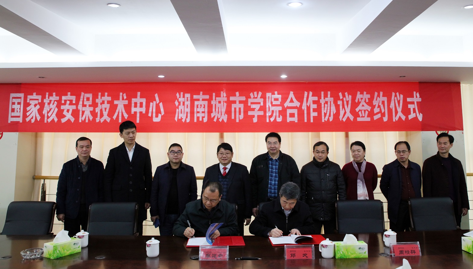 (本网讯)12月5日上午,学校与国家核安保技术中心在办公楼二会议室正式签署了战略合作协议,标志学校将在核安保领域开展产学研用多方合作。党委书记罗成翼、校长李建奇,国家核安保技术中心主任邓戈、副主任杨志民等出席签约仪式。