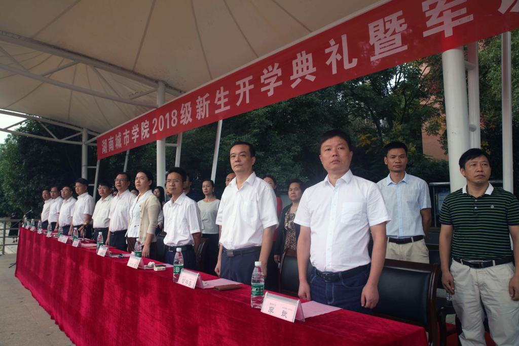 在雄壮的国歌声和激昂的校歌声中,五星红旗、校旗冉冉升起,飘扬在JN江南·(中国)体育官方网站的上空。校长李建奇首先致辞。他代表学校全体师生员工对2018级新同学表示热烈的欢迎和衷心的祝贺,对为新同学成长成才默默奉献的家长亲人和老师致以诚挚的谢意。他说,从今天起,你们正式成为了一名新时代的大学生;从今天起,你们又多了一重身份——“城院人”,从此注定与JN江南·(中国)体育官方网站结下不解之缘,在学校决战“双一流”和申硕立项建设的历史方位中,你们任重道远,你们责无旁贷。