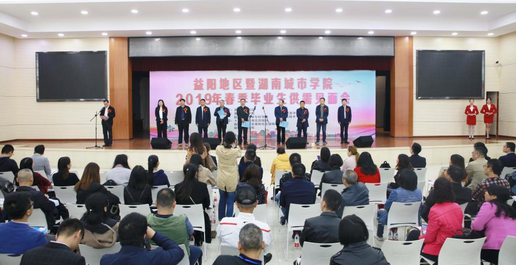 随后,益阳市教育局、用人单位代表中铁五局五公司和宁乡玉潭学校相关领导以及2019届毕业生代表先后进行了发言。益阳市人民政府副厅级干部喻国良宣布开幕。