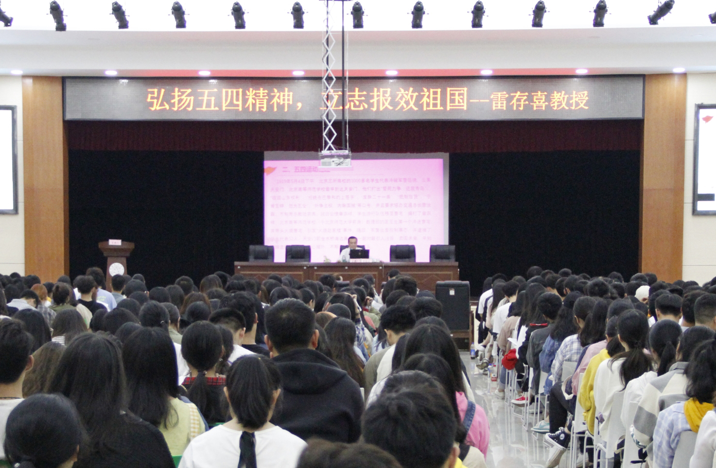 (本网讯)2019年5月17日晚,JN江南·(中国)体育官方网站第三十二期团校培训首堂团课在大学生活动中心开讲,主讲人为党委委员、副校长雷存喜教授。近800名我校团员青年参与此次培训。