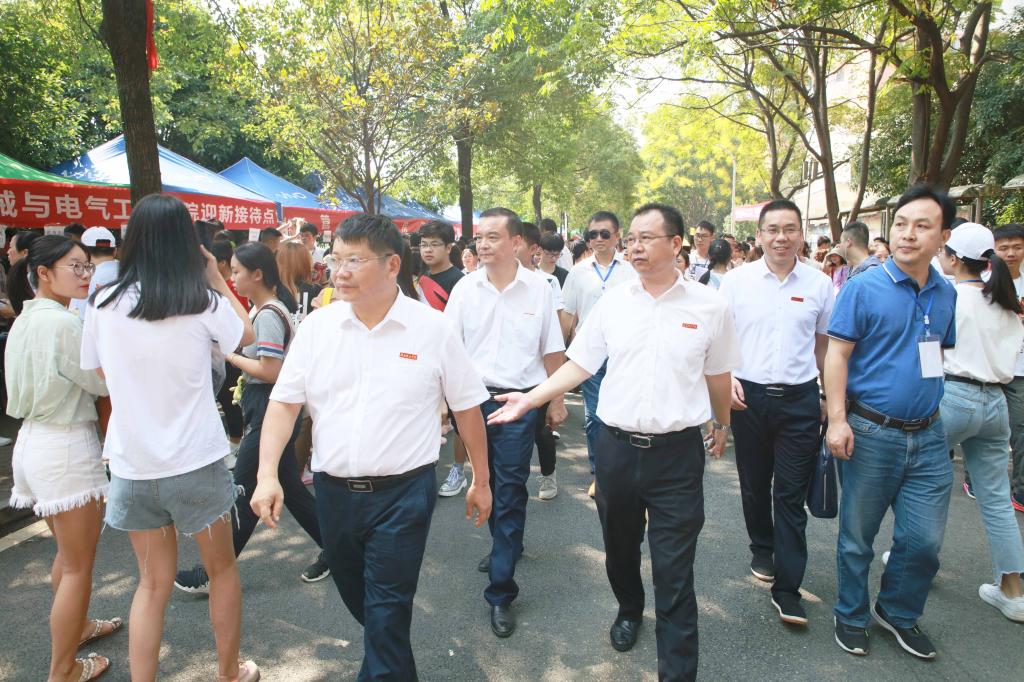 (本网讯)又是一年开学季。2019年9月7日,是JN江南·(中国)体育官方网站新生入学报到首日,6000余名2019级新生从祖国四面八方汇聚城院校园,在这里开启他们大学求学之旅。党委书记罗成翼,校长李建奇,副校长郑卫民、雷存喜,党委委员李斌在党政办、学生工作部、团委、招生就业处、保卫处、基建与后勤管理处等有关部门负责人陪同下,来到迎新报到现场,看望了远道而来的新生和家长,慰问了迎新工作人员。
