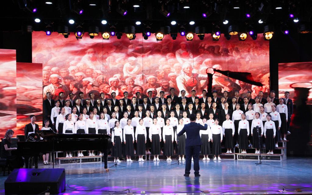 “青青会龙山下,悠悠资水之滨,八百里洞庭潮涌,伴着我们青春的足音……”艺术学院合唱队齐唱校歌拉开比赛序幕,熟悉的旋律瞬间激发了同学们爱校同心的城院情怀。随后,《保卫黄河》《爱我中华》《我爱你中国》等一曲曲动人的红色经典竞相登场,唱出了城院青年对党、对祖国的深厚感情。《南泥湾追寻在希望的田野上》《在灿烂的阳光下》《走向复兴》等一首首脍炙人口歌曲讴歌了伟大祖国带领我们奋进新时代的丰功伟绩。学校澄音合唱团带来特别表演《我的祖国》,唱响了新中国七十载的奋发图强,歌颂这片土地七十年的沧桑巨变。每一支参赛团队都以饱满的热情和嘹亮的歌声表达着对祖国的忠诚热爱现场观众心潮澎湃掌声经久不息最后,全场一起挥舞国旗齐唱《我和我的祖国》