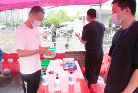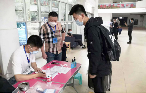 “近期有没有发热现象?”“喉咙痛不痛?”“有干咳吗?”经核验确定无发热、咽痛、干咳等症状后,学生们更换好口罩、用免洗手消毒凝胶消毒双手,再依次通过双视红外人体体温快速筛查系统,确保无异常后入校。进入学生公寓前,学生也需再次测量体温,出示校园卡或学生证,上交健康证明卡,由工作人员核验并登记,方可入内。