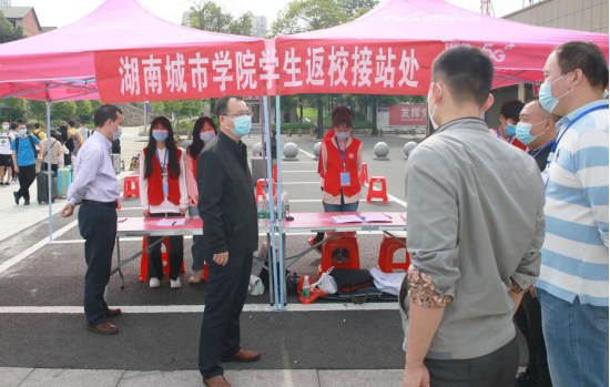 党委书记罗成翼赴接站处看望慰问返校学生。