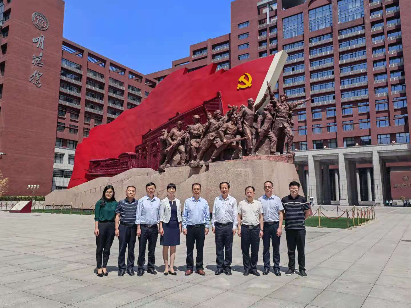 本网讯(通讯员 李彬)2021年6月1日,党委书记李建奇带队,党委副书记何旭娟,副校长何振,党政办、党委宣传部、教务处、学科建设与发展规划处等部门相关负责人赴中国人民大学学习参观。中国人民大学副校长王轶、胡百精及相关人员热情接待了李建奇一行。