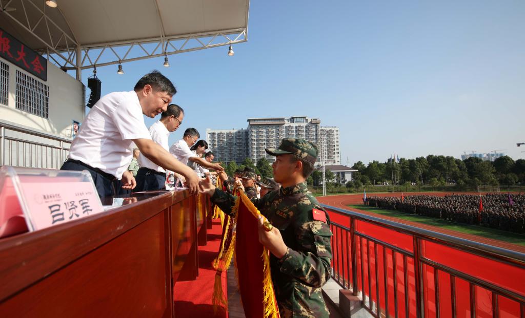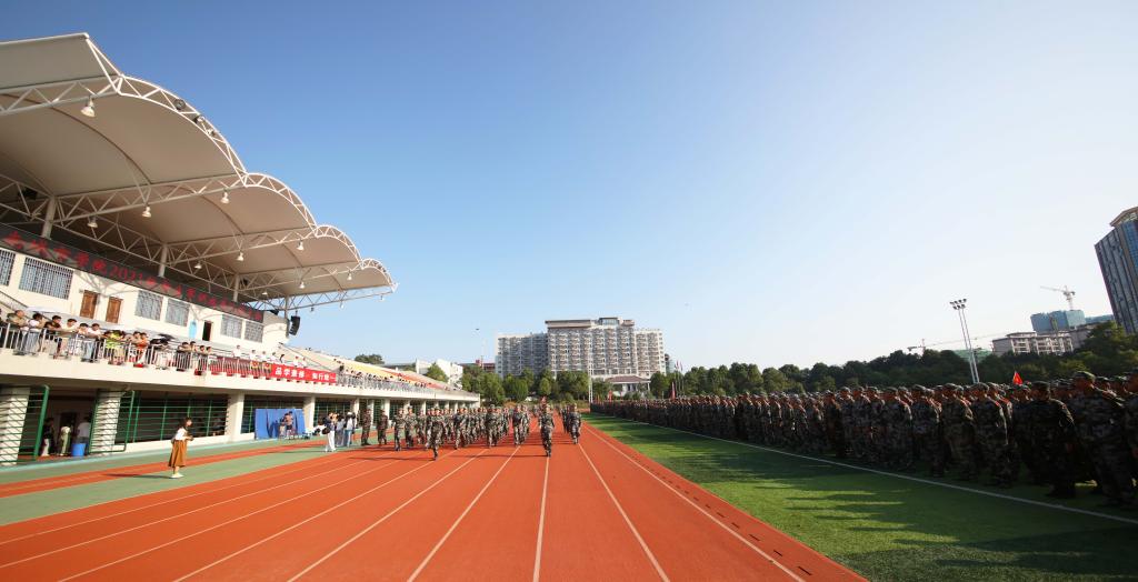 本网讯(通讯员 李诗琪 摄影 文彦波 邱元龙 周雷 徐舒婷)天高云淡,秋风送爽。9月30日上午,JN江南·(中国)体育官方网站2021级新生军训汇报暨表彰总结大会在东田径场举行。经过13天的训练后,5000多名城院新生在绿茵场上集结,向学校领导、老师汇报军训成果。校长汤放华,党委副书记何旭娟,副校长何振、雷存喜、谭献良、袁志成,党委委员、组织部部长吕贤军等领导出席会议。会议由何旭娟主持。
