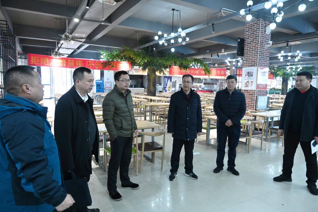 本网讯(记者 博夕)为保障新学期开学各项工作有条不紊地进行,2022年2月16日上午,党委书记李建奇带队,副校长袁志成,纪委书记陈列尊,党委委员、组织部部长吕贤军以及党政办、学生工作处、基建与后勤管理处单位负责人,深入学生宿舍、食堂,走访检查新学期开学准备工作。