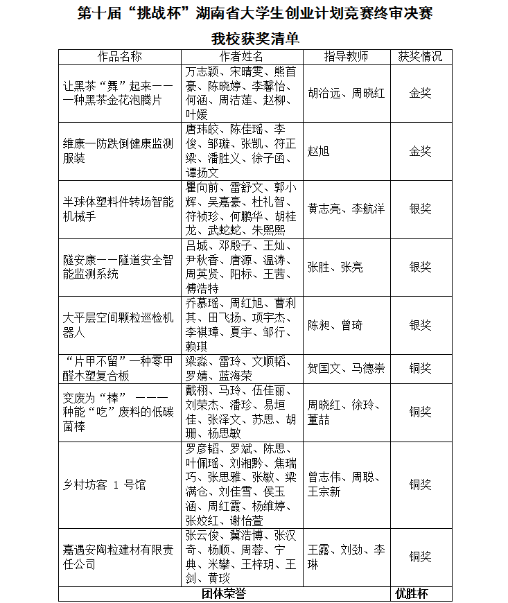 2金3银4铜!我校在第十届“挑战杯”湖南省大学生创业计划竞赛中喜获佳绩