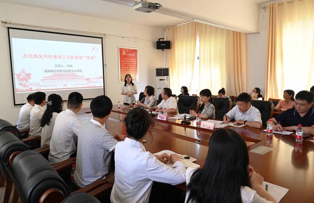 在陈列馆会议室,全体师生党员进行了座谈。马克思主义学院刘卓博士为毕业生党员们上了一堂微党课。刘卓告诫毕业生要做奋斗的大多数,拒做“躺平”的极少数。希望他们以“信仰之笔”写青春坚守,留下笃行不怠的青春足迹;以“担当之墨”写青春奉献,留下奋发向上的青春风采;以“实干之纸”写青春业绩,留下砥砺奋进的青春背影;以“廉洁之砚”写青春底色,留下怀德自重的青春价值。