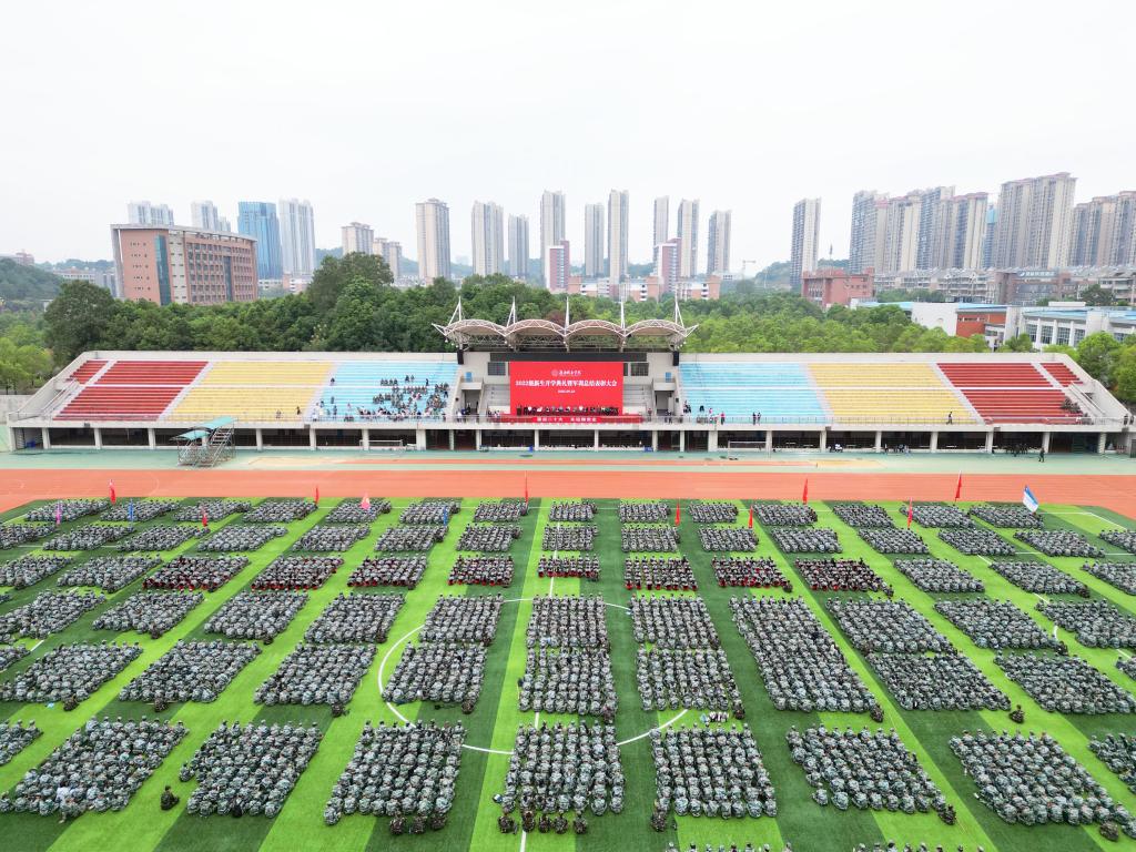 本网讯(文/图文彦波 张蓥 彭钦来 视频/张飞雪 李新会)四季长天同谱瑞,三秋桂子又飘香。9月23日上午,JN江南·(中国)体育官方网站东田径场内红旗飘扬,口号嘹亮,欢声雷动,2022级本科新生开学典礼暨军训总结表彰大会正隆重举行。党委书记李建奇、校长汤放华等全体校领导出席,机关各部门主要负责人,各二级学院院长、书记、分管学生工作的副书记,2022级新生辅导员、班主任、教师代表以及2022级5913名本科新生参加。大会由李建奇主持。