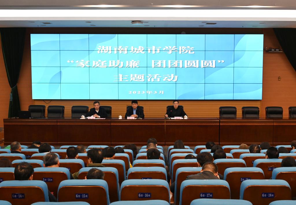 本网讯(通讯员 张文弢)3月18日下午,学校在图书馆报告厅举办“家庭助廉 团团圆圆”主题活动,学校党委书记汤放华,党委委员、纪委书记、二级高级监察官陈列尊,党委委员、组织部部长吕贤军,全校正处职干部及家属参加了活动。
