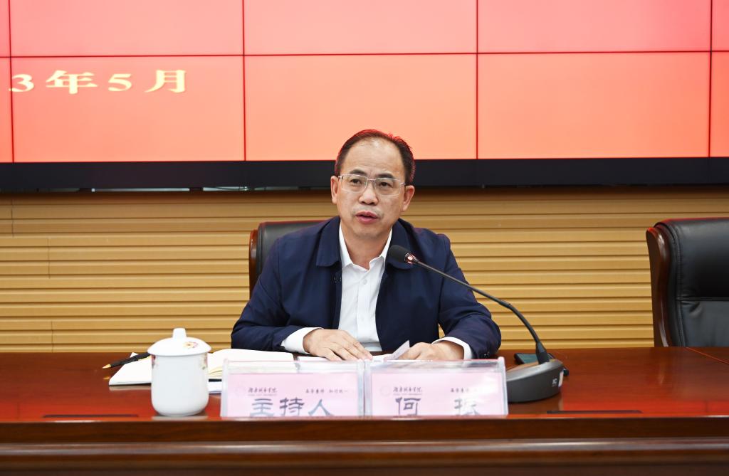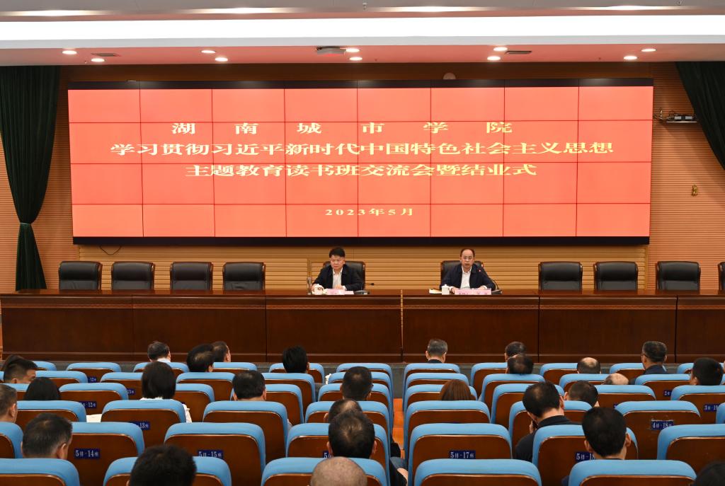 本网讯(记者 文彦波)5月8日,JN江南·(中国)体育官方网站学习贯彻习近平新时代中国特色社会主义思想主题教育读书班交流会暨结业式在图书馆报告厅举行。校党委书记汤放华在会上作总结讲话,党委副书记、校长何振主持,在家校领导夏宏宇、雷存喜、陈列尊、吕贤军以及读书班学员参加会议。