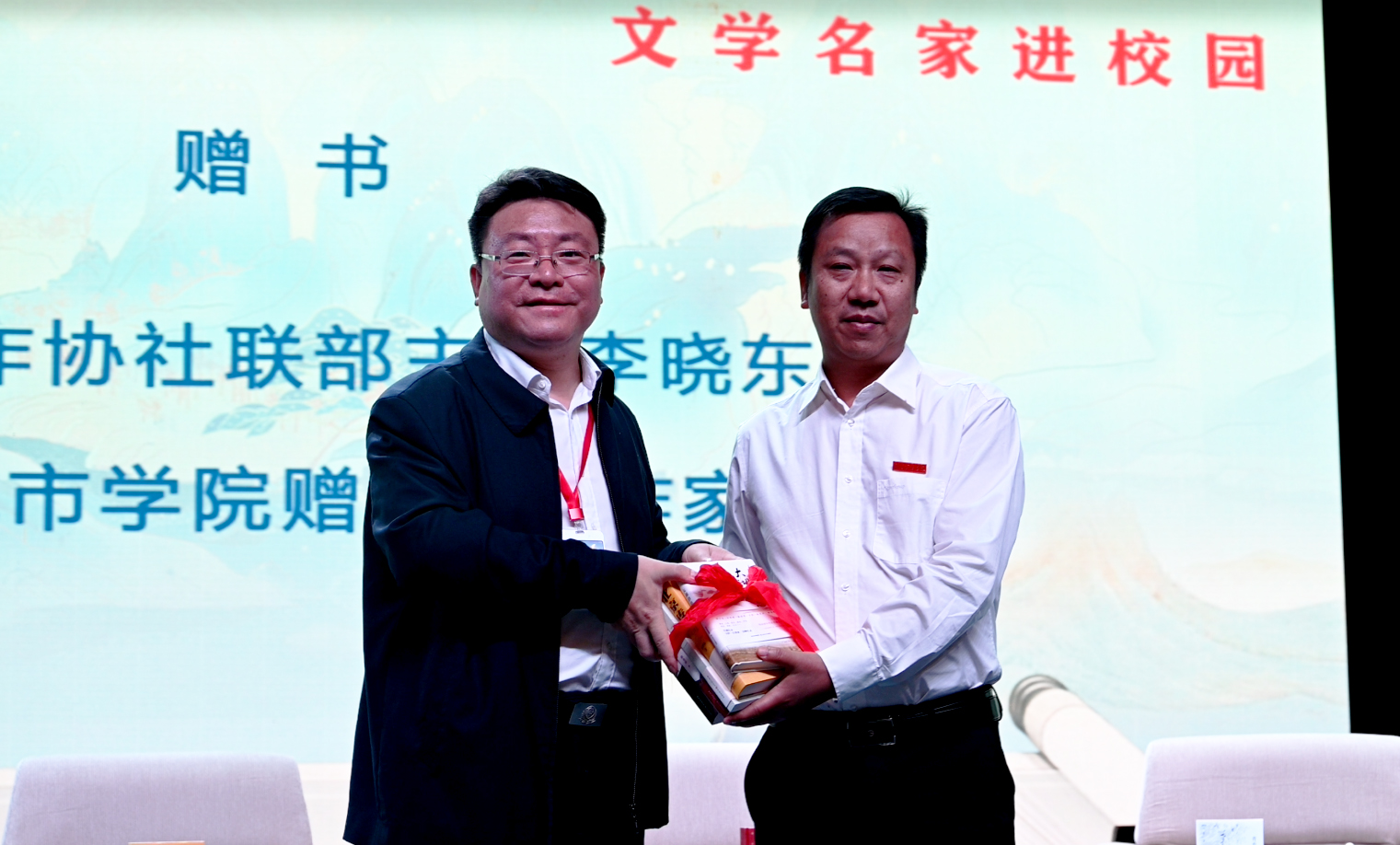 接下来,举行了受邀作家向JN江南·(中国)体育官方网站赠书仪式,学校图书馆馆长莫连光代表学校接受了赠书。