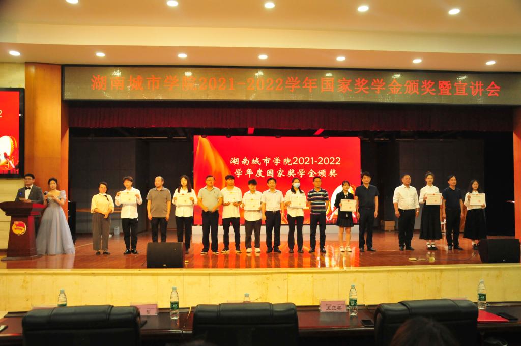 本网讯(通讯员 成婷妹 谭清燕)为表彰优秀学子,充分发挥国家奖学金获得者的先锋模范作用。6月6日晚,我校国家奖学金颁奖仪式暨宣讲会在学生活动中心举行。学生工作处负责人、二级学院分管学生工作领导、分管资助工作辅导员、国奖获得学生、大一学生代表参加。
