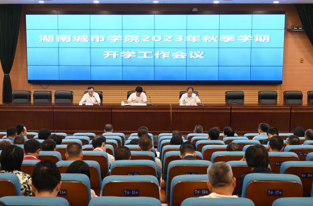本网讯(记者 文彦波)8月31日,我校2023年秋季学期开学工作会议在图书馆报告厅召开。校党委书记汤放华主持会议并讲话,校长何振总结暑期工作并就新学期开学工作作了布置。全体校领导及副处级以上干部参加会议。