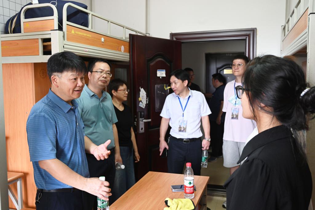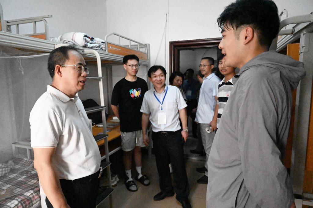 在学生宿舍10栋100室,何振与就读于测绘工程专业的新生牛明辉亲切交流。“对住宿条件还满意吗?生活上还有什么困难没有?”短暂的寒暄后,何振勉励他认真学好专业文化知识,用精准测绘为国家建设保驾护航,将个人小我融入祖国大我,在新时代新征程中展现城院学子风采。