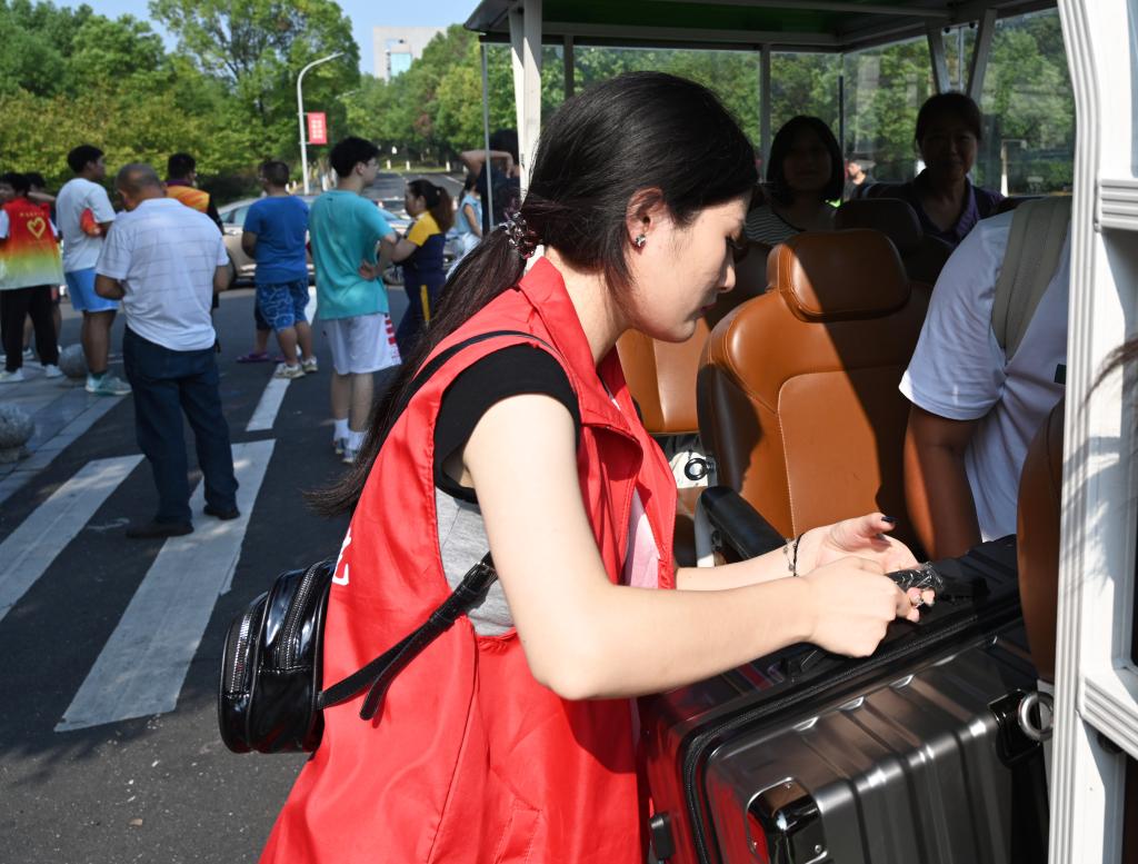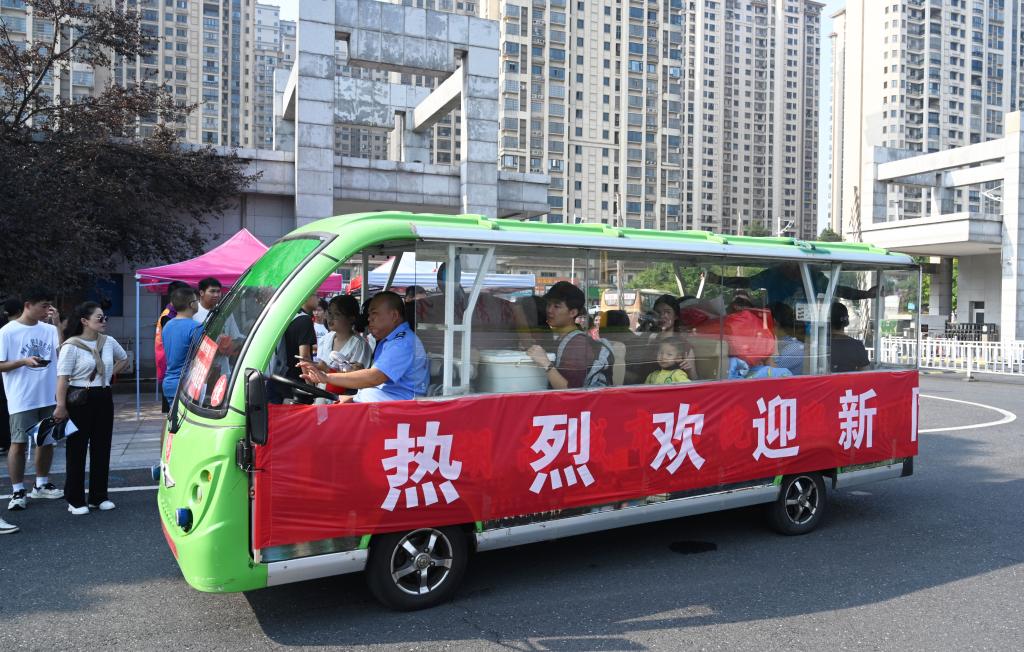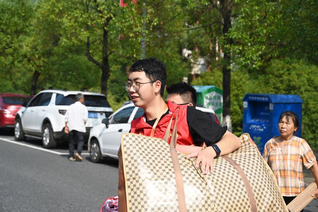 今年是疫情放开之后的第一个新生报到季,和往年不同,今年新生家长可以陪伴孩子入校办理报到手续,无疑也给校园交通带来了很大的考验。为此,学校除派出全部保安外,还安排了25名军训教导队队员进行交通疏导和秩序维护,确保校园主要道路交通畅通、有序。另外,组织近10台电瓶车全天无休循环免费运送新同学,打通新生入校“最后一公里”。