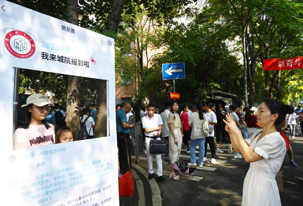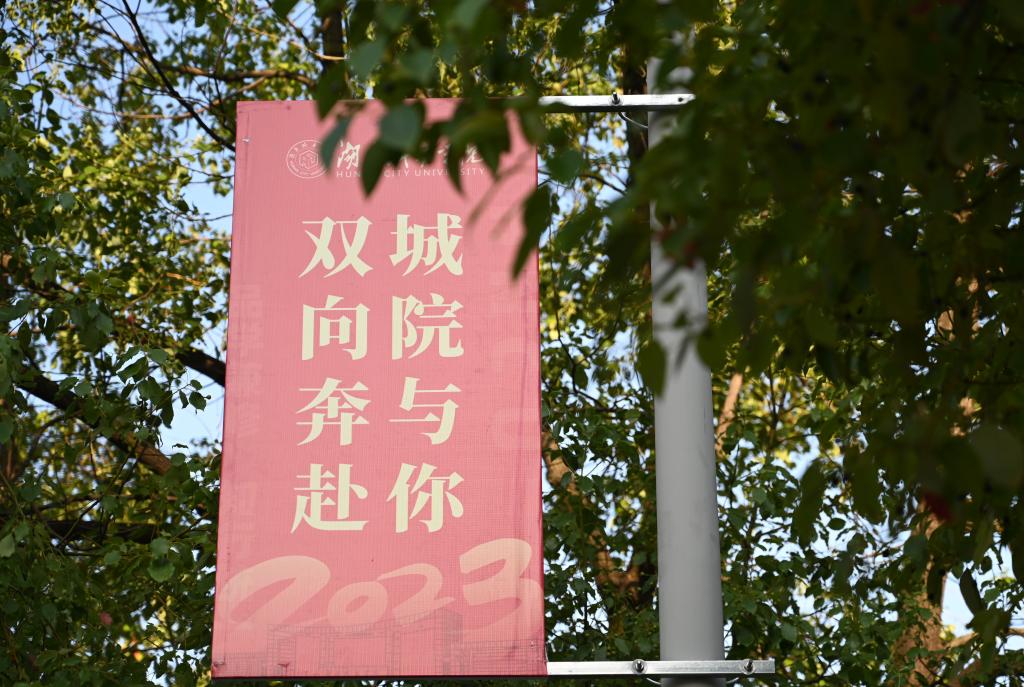 进入校门,“欢迎2023级新同学”的大型展板映入眼帘,格外醒目。行走在校园林荫道上,一面面鲜红的道旗在绿树掩映之间依次展现,“遇见城院 遇见最好的自己”“立鸿鹄志 做奋斗者”“光芒闪耀的青春 翩翩而至的你”等话语,既不失温馨,又催人奋进。在龙城大道迎新“主战场”,一条条励志的横幅一字排开,营造出热烈喜庆的氛围。