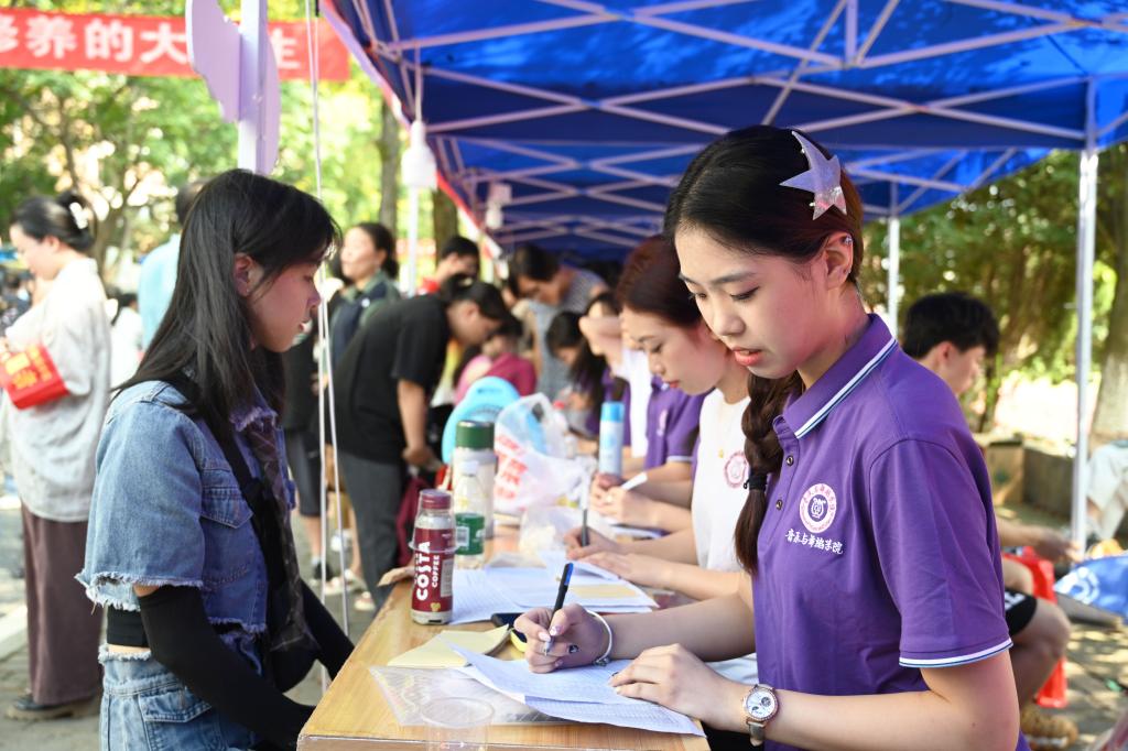 “您好!请问有什么需要帮忙的吗?”迎新期间,在校园的每个角落,到处都活跃着志愿者忙碌的身影。据统计,今年校团委和各二级学院共派出志愿者5350人次,从早上七点开始,给新同学提供全程式“一对一”“多对一”志愿服务,为2023级新生入学保驾护航。